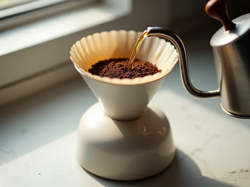 Agora, despeje o restante da água. Faça isso em fluxos constantes e circulares, começando do centro e indo para as bordas, sem pressa. Tente não jogar água diretamente nas paredes do filtro. Essa etapa é onde a mágica acontece, extraindo os compostos solúveis do café. A paciência aqui garante um resultado superior, como explorado em variações no fluxo de água na extração.