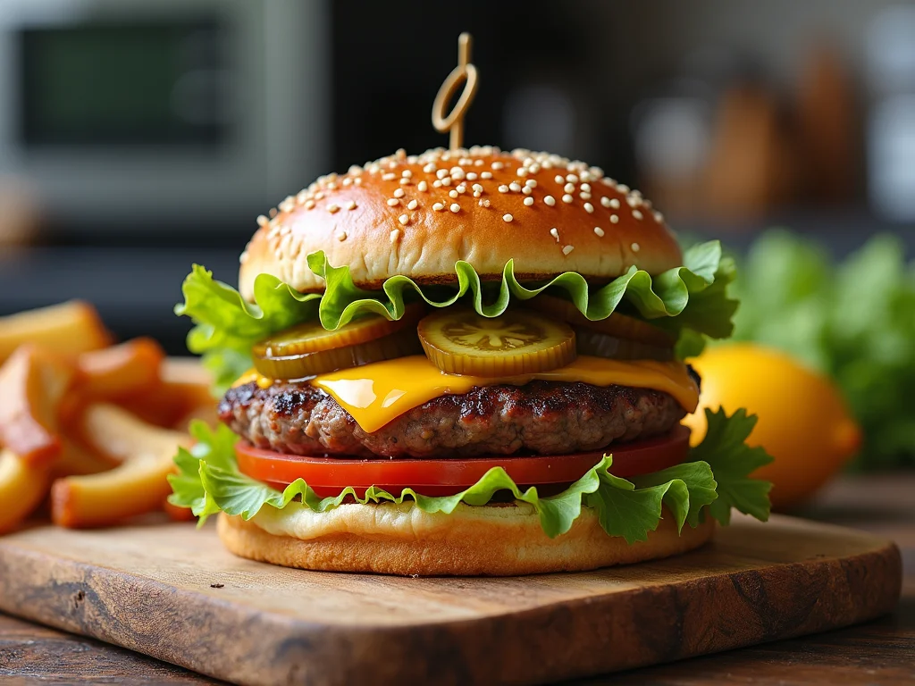- Monte seu sanduíche: Sele levemente o pão na manteiga. Em seguida, monte na ordem: pão selado, hambúrguer com queijo derretido, cebola caramelizada (se gostar), picles, tomate e, por último, a alface. Essa organização, vista em dicas de montagem de sanduíches, ajuda a manter a estrutura.