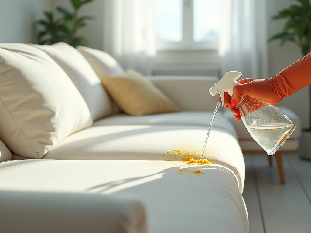Manchas amareladas no sofá podem ser combatidas com uma solução simples: misture 2 colheres de sopa de vinagre branco em 1 xícara de água. Aplique com um pano limpo, sem encharcar, e depois seque bem. É um truque eficaz para renovar o visual.