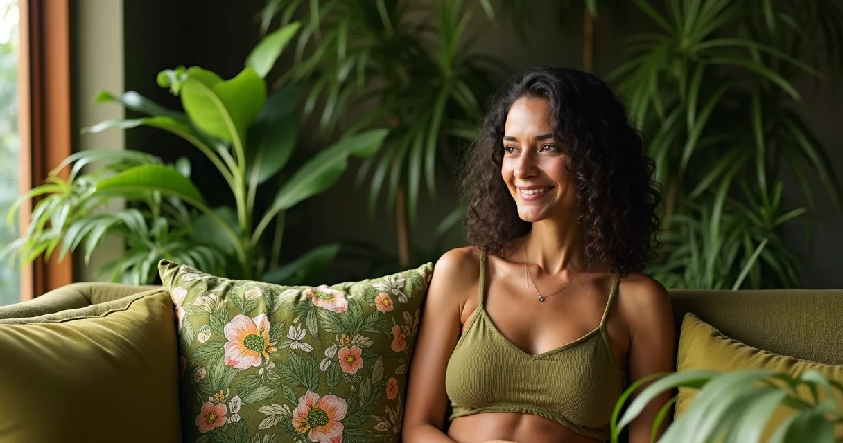 Verde Boho Chic e Natural: Aqui o verde se mistura com estampas étnicas, fibras naturais e muitas plantas. Tons terrosos como o verde-oliva e o musgo reinam. É um estilo mais descontraído e cheio de personalidade. Imagine almofadas com mandalas e um tapete de sisal.