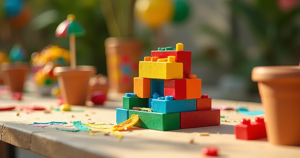 No Brasil, onde festas costumam ter orçamento apertado, usar materiais acessíveis como papel kraft (R$ 15 o rolo de 50cm x 10m) e Lego reaproveitado é o pulo do gato.