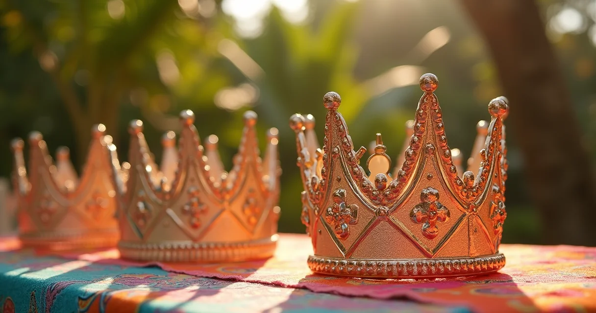 Forminhas de coroa enfileiradas na mesa doce