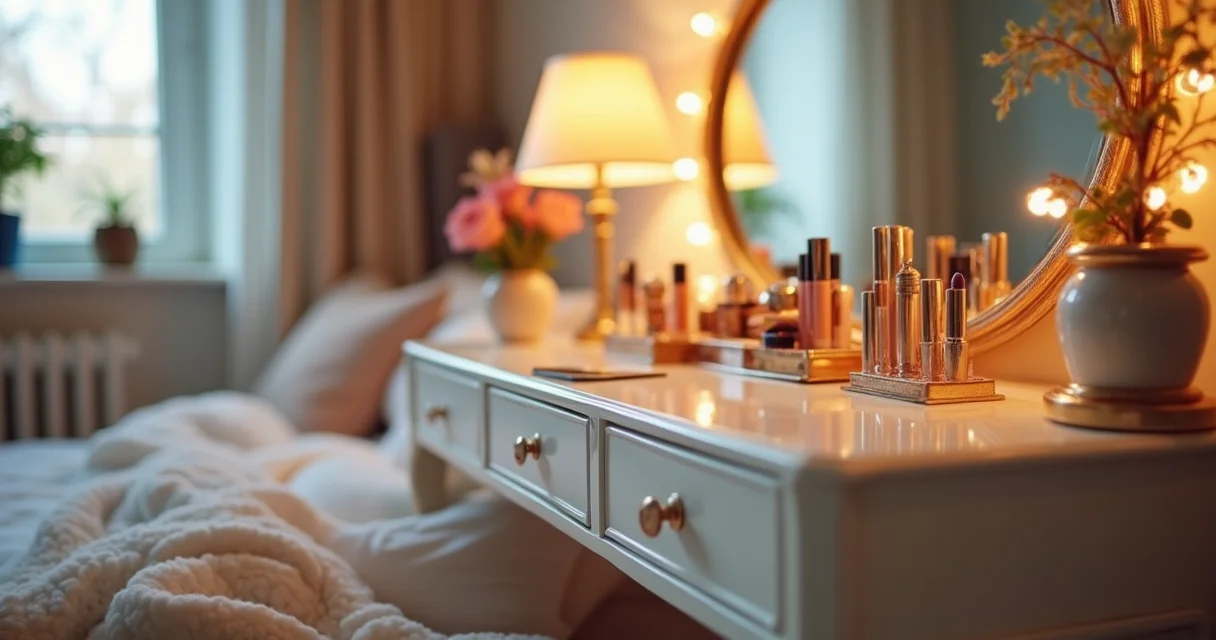 • Iluminação Estratégica: Invista em uma luminária de mesa charmosa ou um espelho com luz embutida. Isso não só ajuda na maquiagem, mas também cria um clima aconchegante.