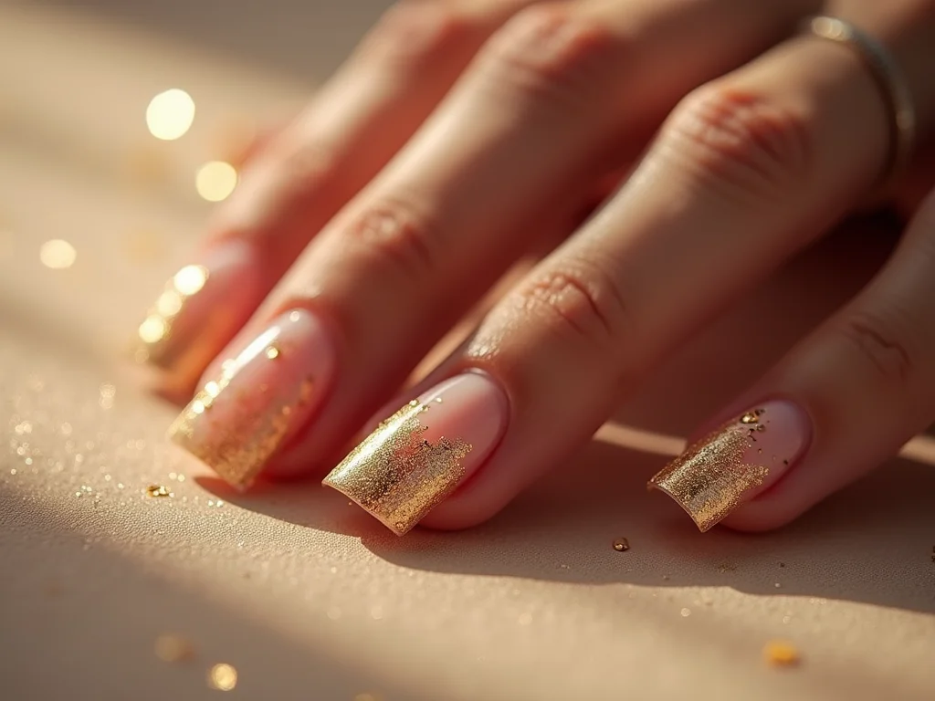 - Base Colorida: Experimente aplicar a folha de ouro sobre bases de cores diferentes. Um esmalte escuro realça o brilho dourado, enquanto um claro cria um contraste delicado.